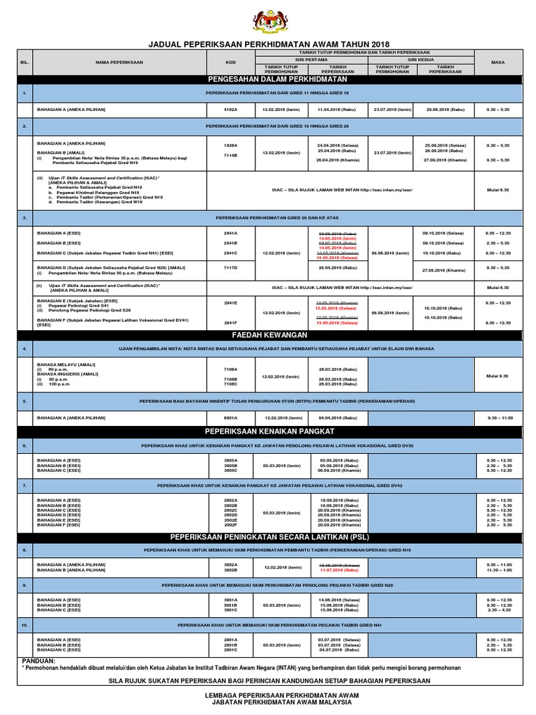 Jadual Peperiksaan Perkhidmatan Awam Tahun 2020 My Panduan